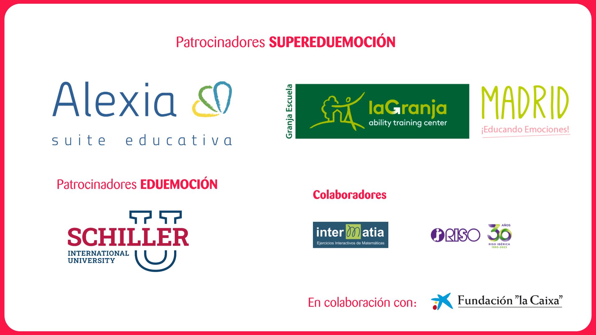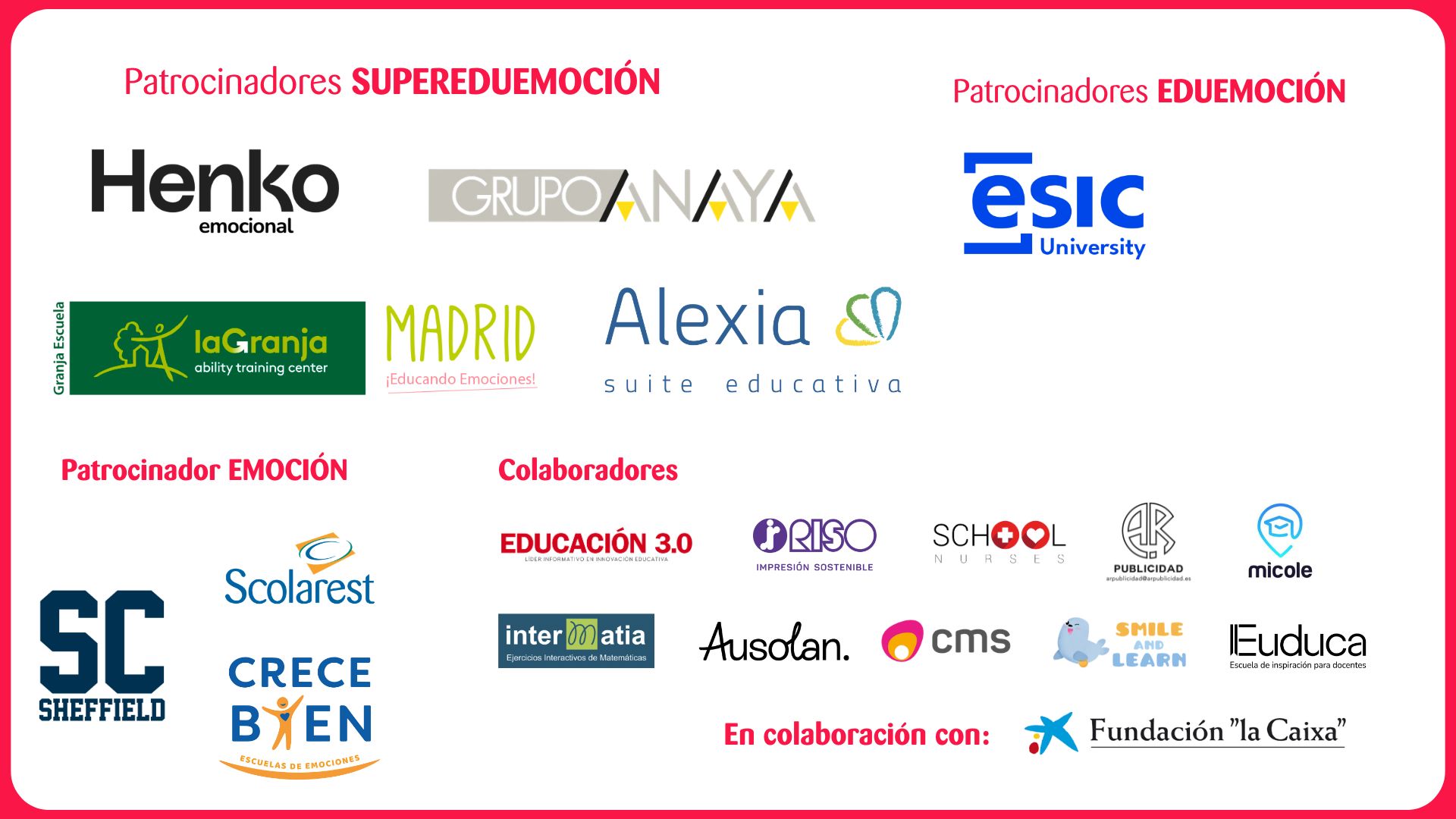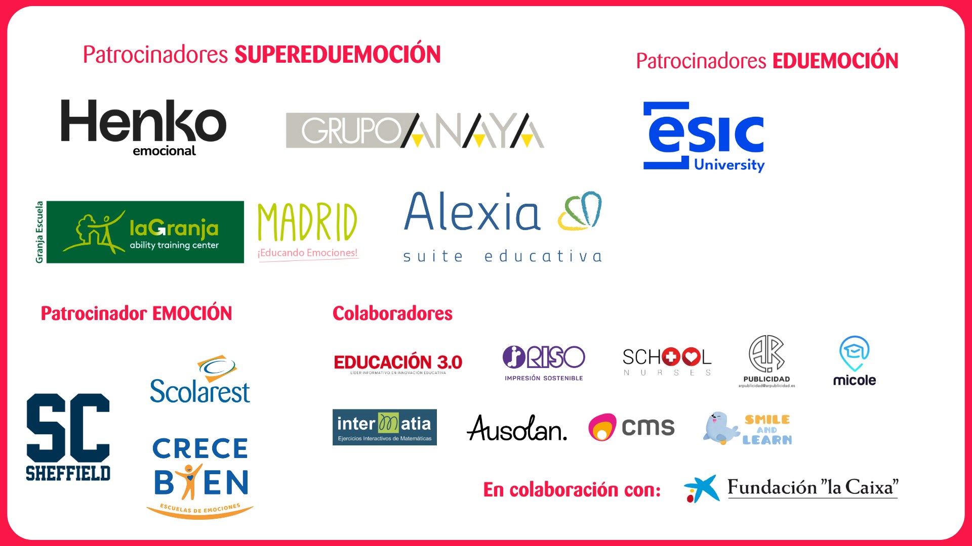 Como parte de esta apuesta, desde 2017 los Colegios Zola impulsan el Encuentro Eduemoción: Inteligencia Emocional en Centros Educativos. En 2024 nace la Fundación Zola, quién se encarga de seguir impulsando este evento, con la colaboración de los Colegios Zola.